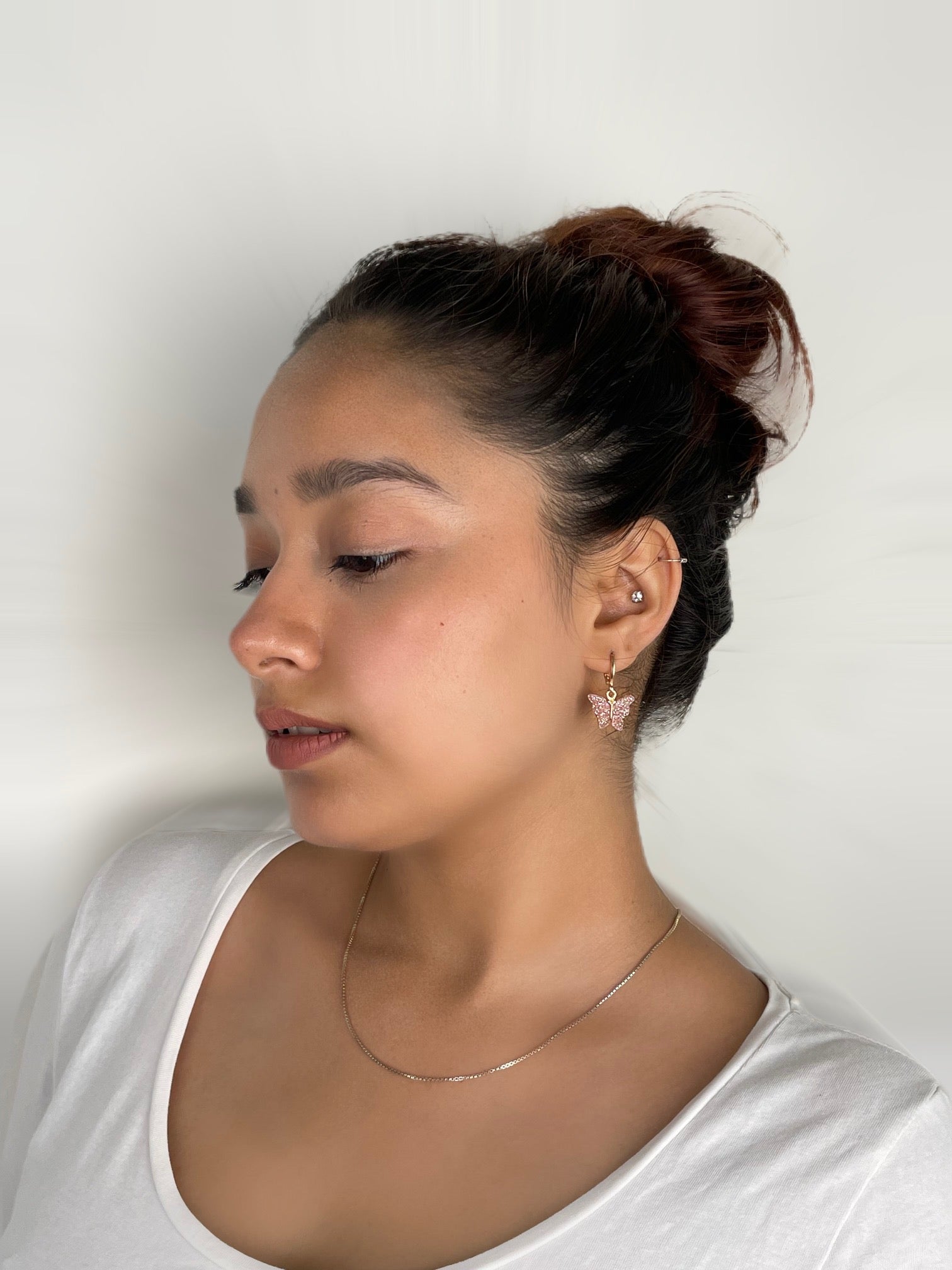 We have found the next staple item for your wardrobe in our Butterfly Huggie Hoops. These beauties feature our timeless gold huggie base and dangling, white butterfly pendants, making them the perfect addition to your everyday look.