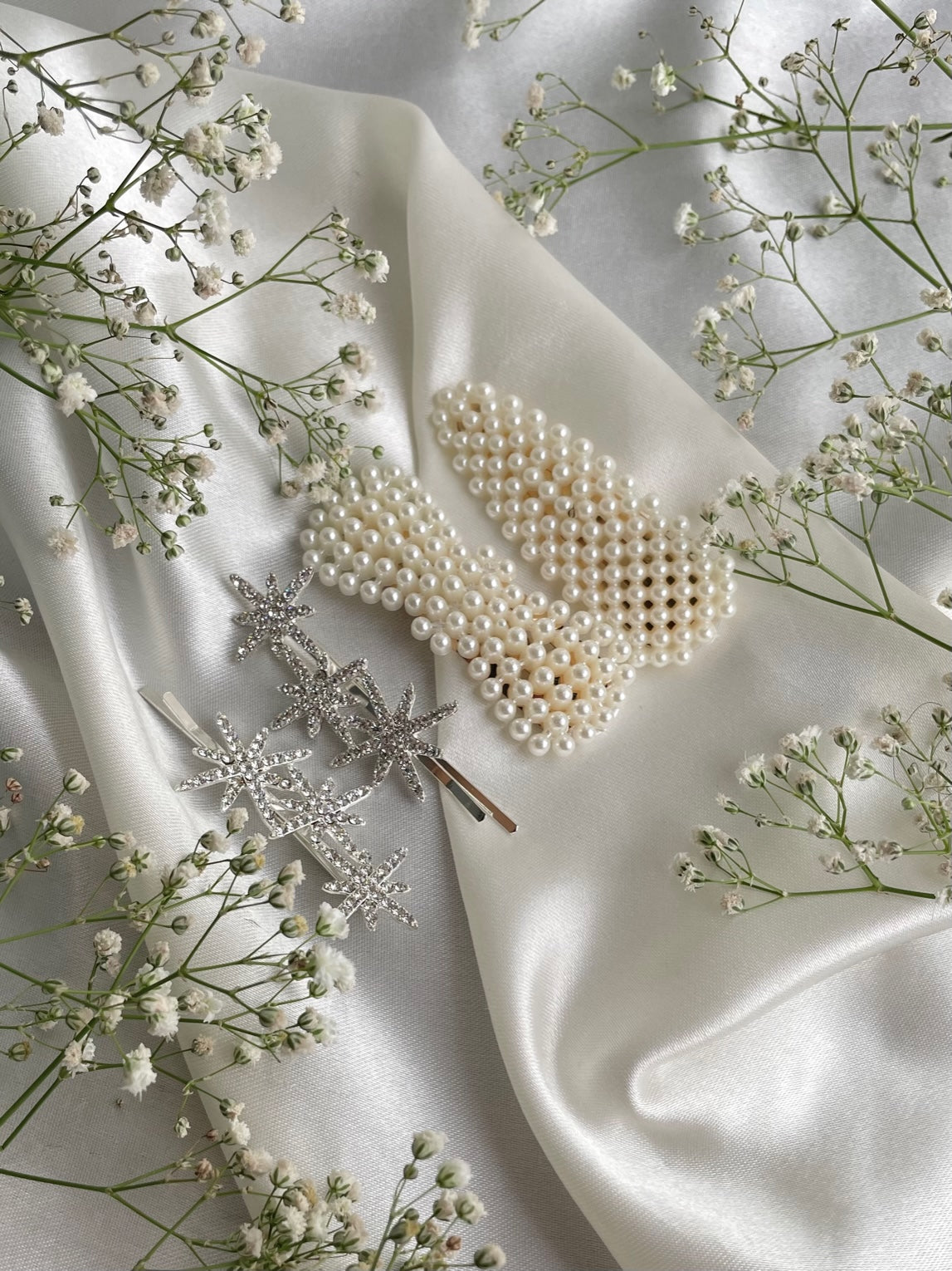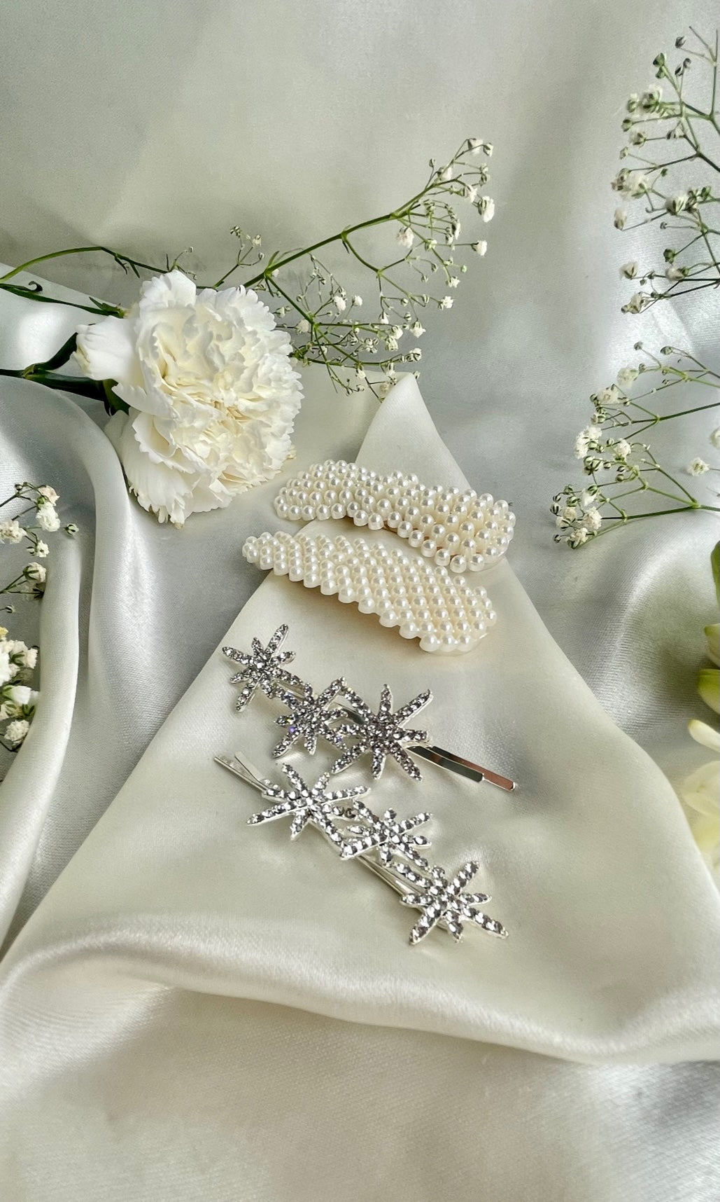 Style any 'do with this impeccably chic hair clip set. Featuring a set pearl-embellished clip and set of Star embellished pins. This glam duo is ideal for any outfit.