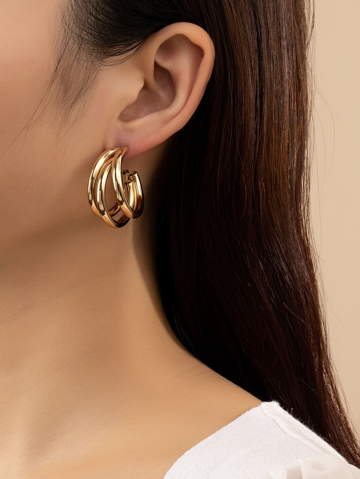 These elegant triple hoops earrings look luxurious and refined. Look elegant at any occasion, be it grabbing coffee with a friend or going to a party with our gold hoop earrings.